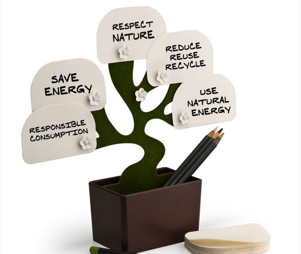Desk Tree Bonsai Stationery/Office Notes Folder Pen Holder/Message Block Organize Notepads/5 Flower Magnetic Clip+Green Papers